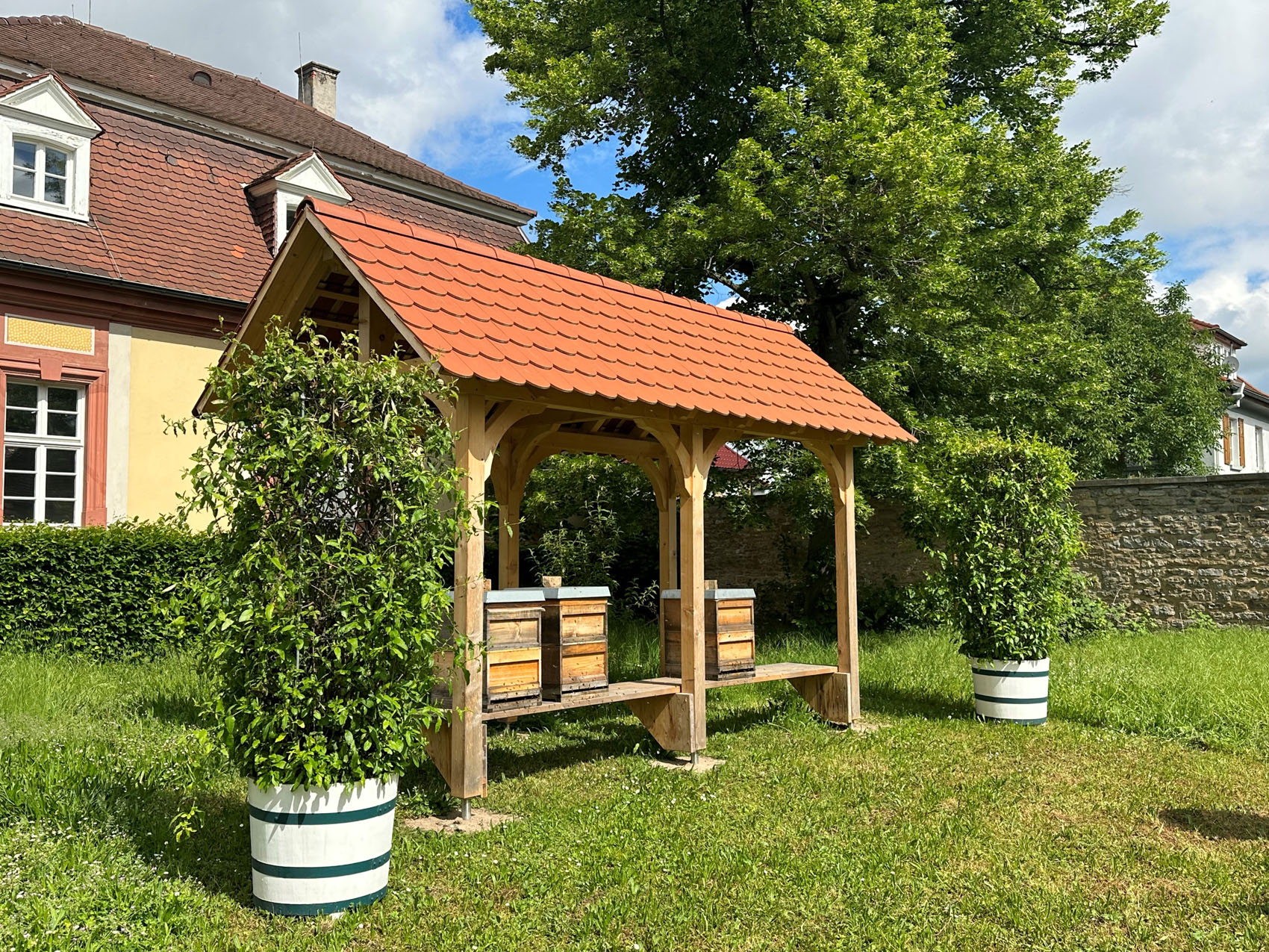 (ssg) An den Bienenstöcken im Garten von Schloss Bruchsal herrscht reges Treiben – in der Sonderführung „Forschen, entdecken, schützen“ mit Imker Martin Rausch am Sonntag, 10. August, geht es den fleißigen Insekten auf die Spur. Um 13.00 und 15.00 Uhr erfahren die Teilnehmenden vom Experten, wie Honig entsteht, wie sich ein Bienenvolk organisiert und weshalb die Insekten so wichtig für das Ökosystem sind. Zudem können alle Interessierten ab sofort mit einem Insektenhotel in der Form eines Schlosses etwas für den Artenschutz tun.