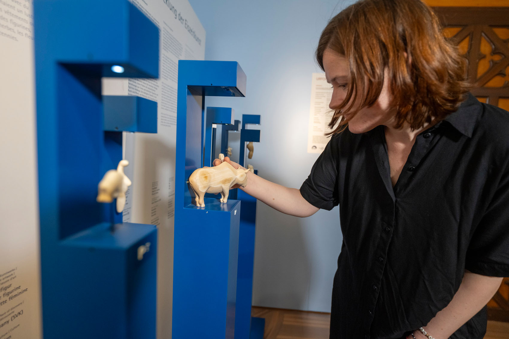 Mammuts, Pferde oder Höhlenlöwen – die mächtigen Tiere der Eiszeit – tauchen ebenso auf wie weiblich gedeutete Figuren oder Mischwesen, die menschliche und tierische Züge vereinen. Viele Originale sind nur fragmentarisch erhalten. Für die Ausstellung wurden sie aufwendig rekonstruiert – als Tastobjekte vermitteln sie die Kunstfertigkeit unserer Vorfahren.
