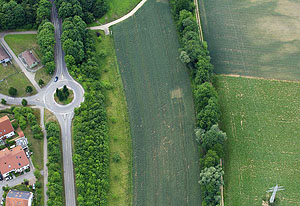 Links: KZ Kochendorf (Bad Friedrichshall/HN). Im Ackergelände des ehemaligen Lagerstandortes zeichnet sich links der Baumreihe der Grundriss einer ehemaligen KZ-Baracke ab. (Beide Bilder © Landesamt für Denkmalpflege im Regierungspräsidium Stuttgart)