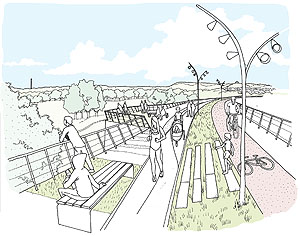 Nach den Verträgen der Stadt Stuttgart mit der Deutschen Bahn AG sind alle nicht mehr benötigten Eisenbahnbauwerke abzubauen. Dies hält der SHB für falsch, nachdem eine Machbarkeitsstudie des Stuttgarter Planungsbüros Daniel Schönle überzeugend zeigt, dass Teile der Gleisanlage einer neuen und nachgerade wünschenswerten Nutzung zugeführt werden können. Die Idee: ein Rad- und Fußweg auf der alten Gleisanlage vom Nordbahnhof bis zum neuen Europaviertel.