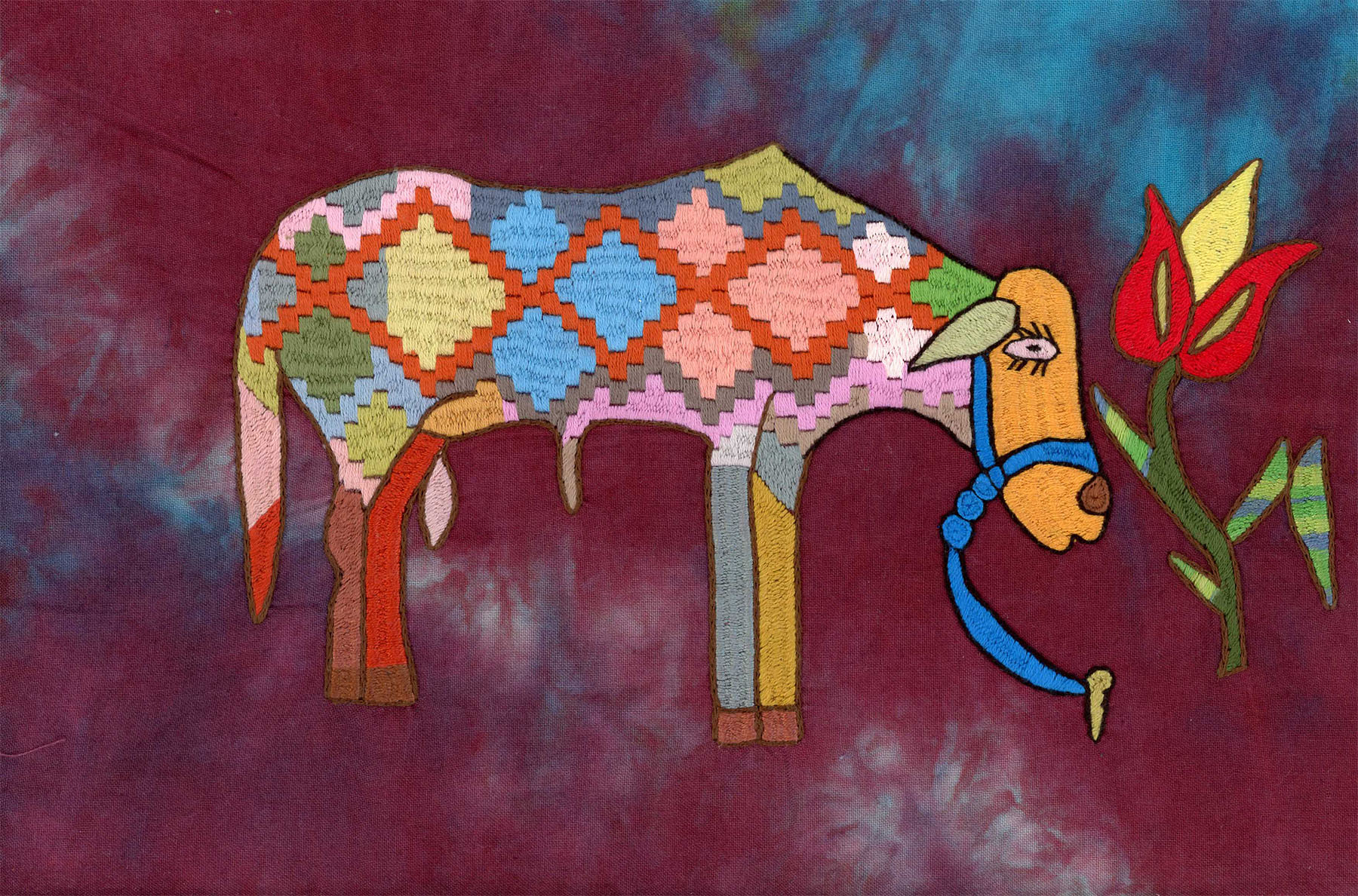 Gestickte Kuh von Lomja; Rohling für die Weiterverarbeitung in Deutschland (© Lomja, Afghanistan).