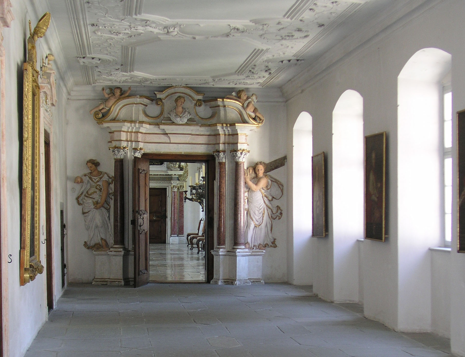 Kloster und Schloss Salem, Korridor in der Prälatur mit Eingang zum Kaisersaal.