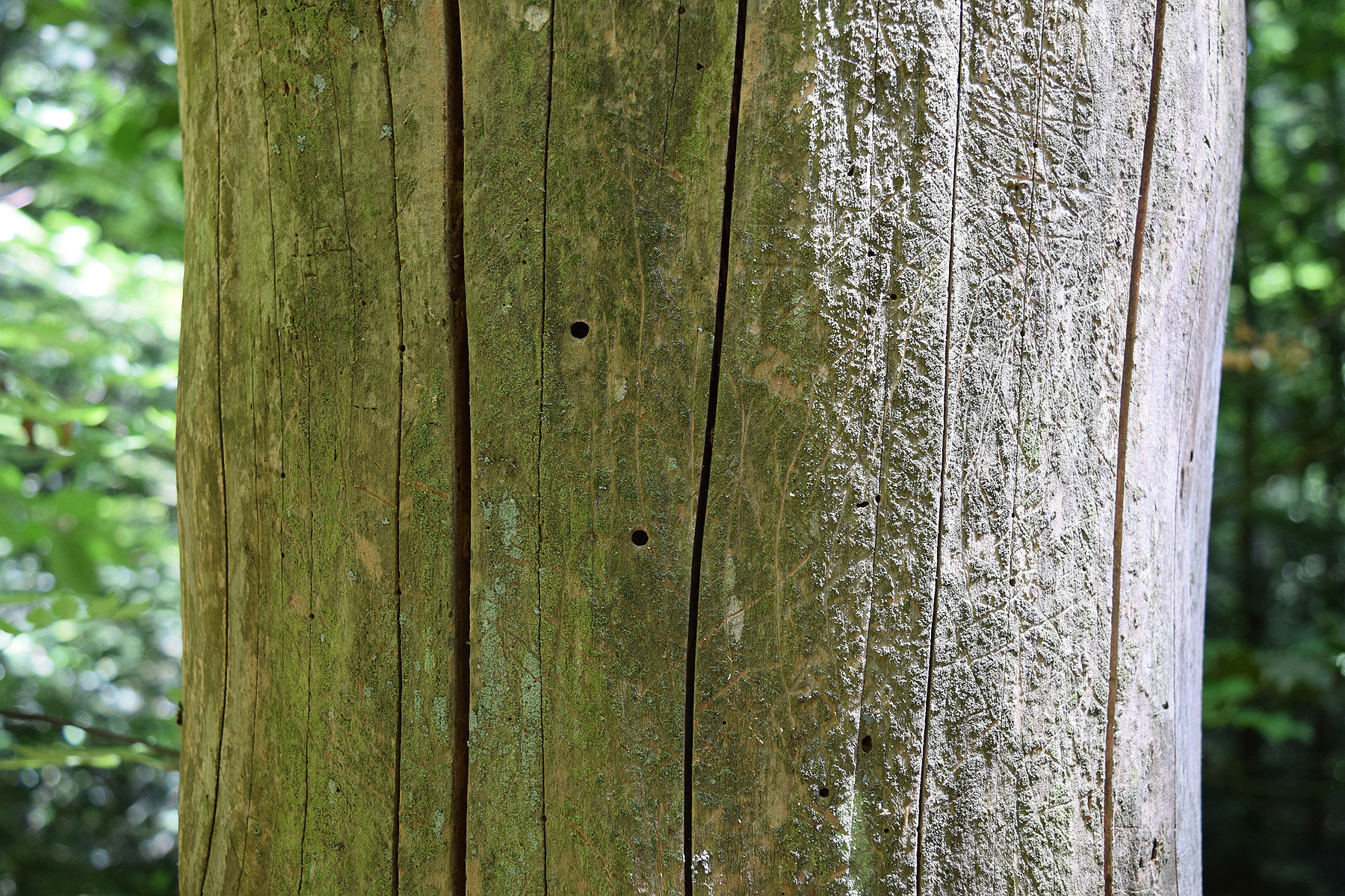 Totholz mit Käferbohrlöchern, welche vermutlich von Wildbienen genutzt werden. Foto: Tristan Eckerter