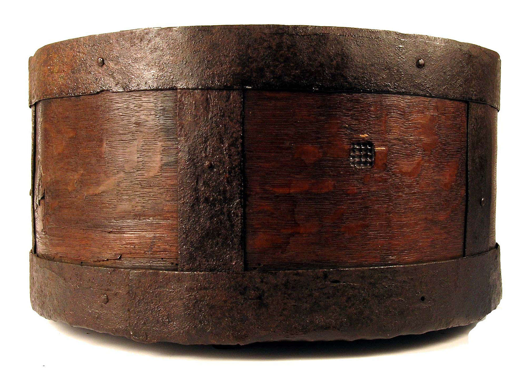 In früheren Zeiten verwendete man für die Bestimmung von Getreidemengen Hohlmaße wie das ausgestellte Korn- oder Getreidemaß aus dem 18. Jahrhundert. Ab der zweiten Hälfte des 19. Jahrhunderts wurden sie allmählich durch Waagen verdrängt. Das gezeigte Beispiel ist aus Eichenholz gefertigt und mit Eisenbeschlägen besetzt. Auf der Wandung befindet sich ein Brandzeichen. Der Bügel in der Öffnung diente nicht nur zur Stabilisierung des Gefäßes, sondern ermöglichte auch einen glatten "Abstrich", so dass die Füllmenge immer gleich war. Daher heißen diese Gefäße auch Streichmaß.