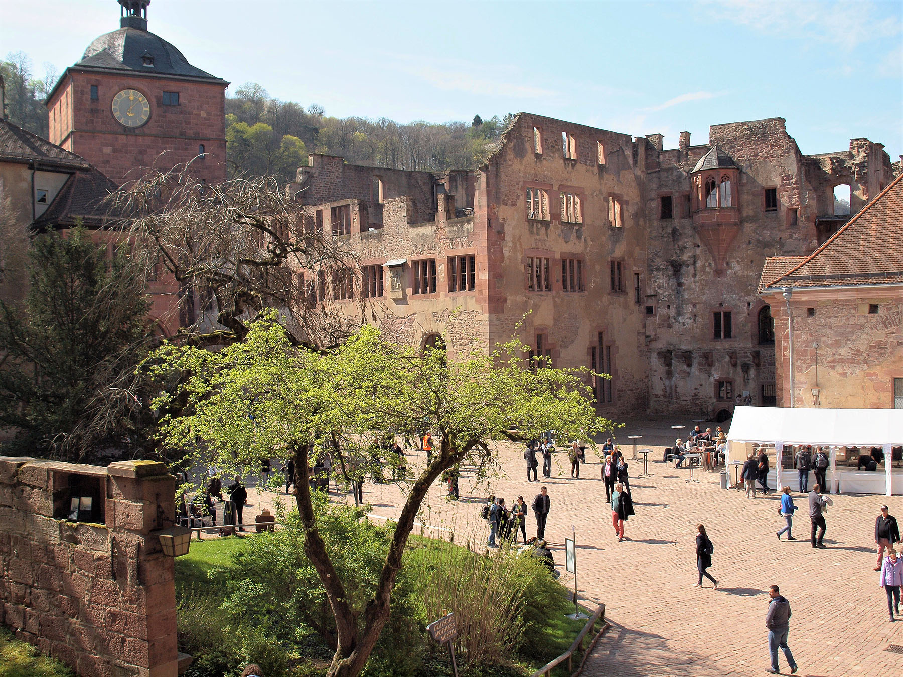 Schloss Heidelberg, Schlosshof. Foto: kulturer.beSchloss Heidelberg, Besucher im Friedrichsbau. Foto: Nils Schubert, SSGSchloss Heidelberg, Tanz mit Besuchern im Königssaal. Foto: kulturer.beSchloss Heidelberg, Fassade des Friedrichsbaus im Licht der Abendsonne. Foto: kulturer.beSchloss Heidelberg: Schlosshof.