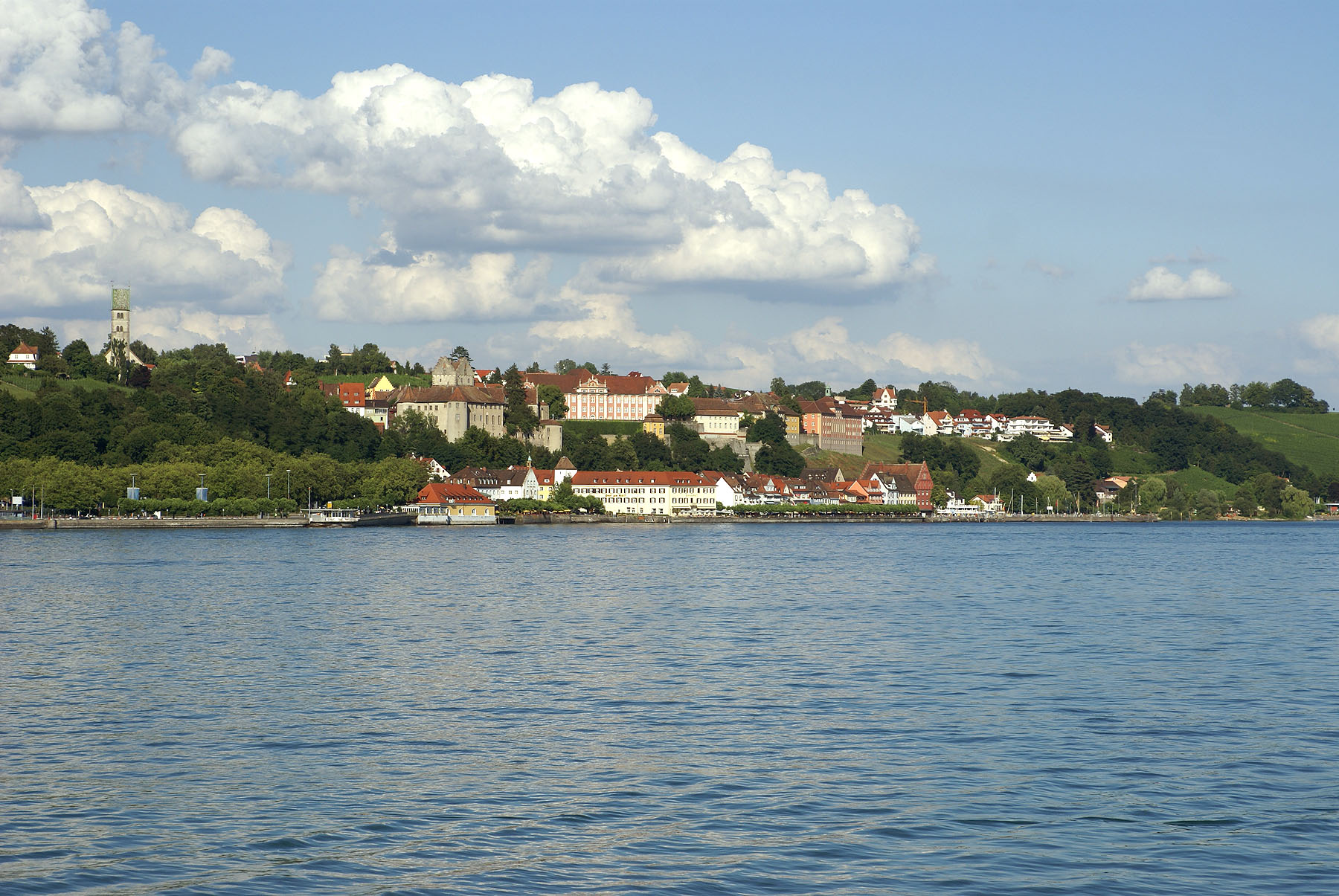 Weinberge bis in das Stadtgebiet: Meersburg. Panorama von der Seeseite. Foto: kultuer.be