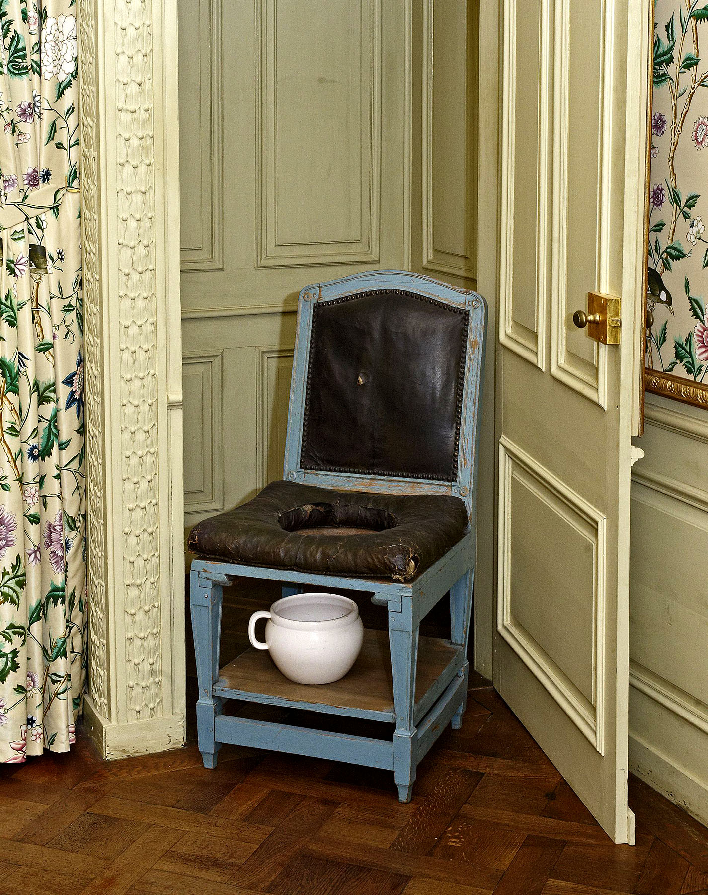 Auch Kurfürstin Elisabeth Augusta, die Ehefrau von Kurfürst Carl Theodor, besaß ein eigenes „geheimes Gemach“. Vom Schlafzimmer ihres Appartements im Schwetzinger Schloss führt eine Tapetentür zur Toilette, die mit grüner Holzvertäfelung ausgekleidet ist – und in der sich ebenfalls ein Leibstuhl befindet. War der „Stuhlgang“ erfolgreich, konnte dieser über eine Durchreiche am Boden diskret entsorgt werden. Über ein angrenzendes Treppenhaus entfernten die Bediensteten die kurfürstlichen Hinterlassenschaften. Auch noch am Ende des 19. Jahrhunderts erleichterten mobile Leibstühle, unauffällig in kleinen Möbelstücken verborgen, „das Geschäft“. Die „Retirade“ der Kurfürstin kann bei Schlossführungen besichtigt werden.