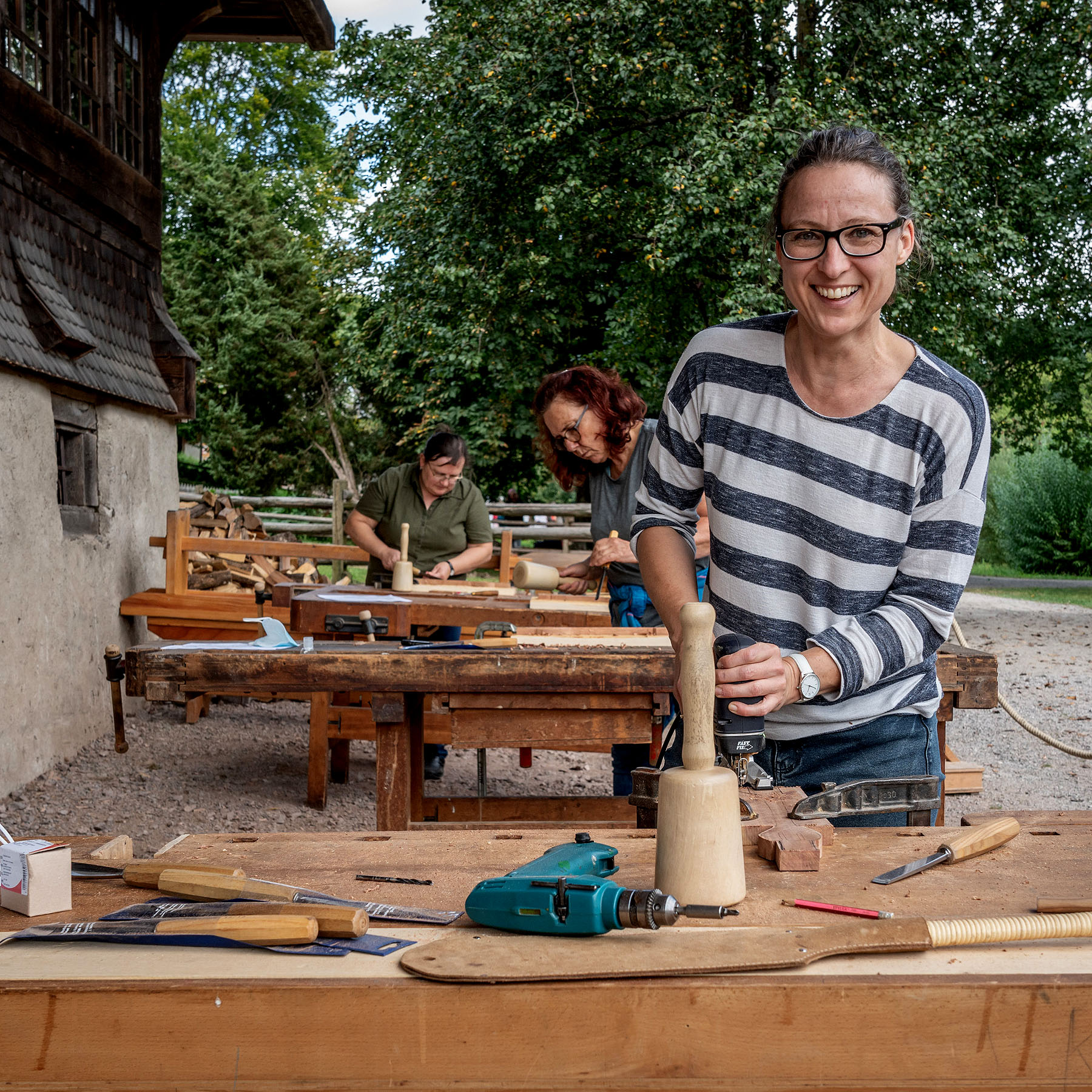 Workshop Holzschnitzen: Neben dem Spitzenklöppeln und der Freilichtmalerei können Interessierte im Rahmen des Workshops Holzschnitzen im Freilichtmuseum Vogtsbauernhof erlernen. Foto: Schwarzwälder Freilichtmuseum Vogtsbauernhof, Hans-Jörg Haas