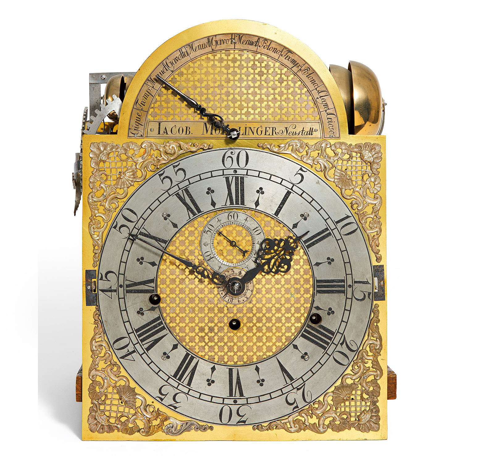Die beeindruckende Bodenstanduhr mit einem Glockenspielwerk von Johann Jacob Möllinger befindet sich seit dem Jahr 2020 im Besitz der Staatlichen Schlösser und Gärten Baden-Württemberg. Der Uhrmacher und Restaurator Christian Schnurbus ist mit jedem Zentimeter des raffinierten Uhrwerks vertraut und findet daher immer den richtigen Ton. Als Spezialist für historische Uhren hat er schon mehrmals die technische Meisterleistung restauriert und kommt regelmäßig ins Barockschloss Mannheim, um die Bodenstanduhr zu warten. Ihr Glockenspielwerk verfügt über insgesamt zwölf Tanzmelodien mit einer Dauer von jeweils 45 bis 50 Sekunden. Das Ergebnis ist ein einzigartiges Klangerlebnis, das von 14 Glocken erzeugt wird. Ab Dienstag, 26. September können die Besucherinnen und Besucher der Melodie einer Polonaise lauschen.