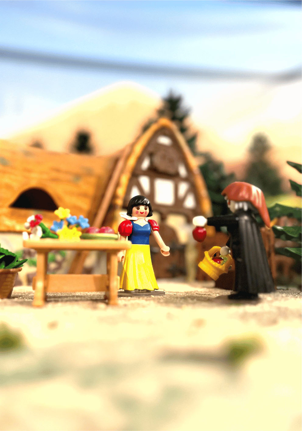 Märchenszene: Schneewittchen und die Hexe