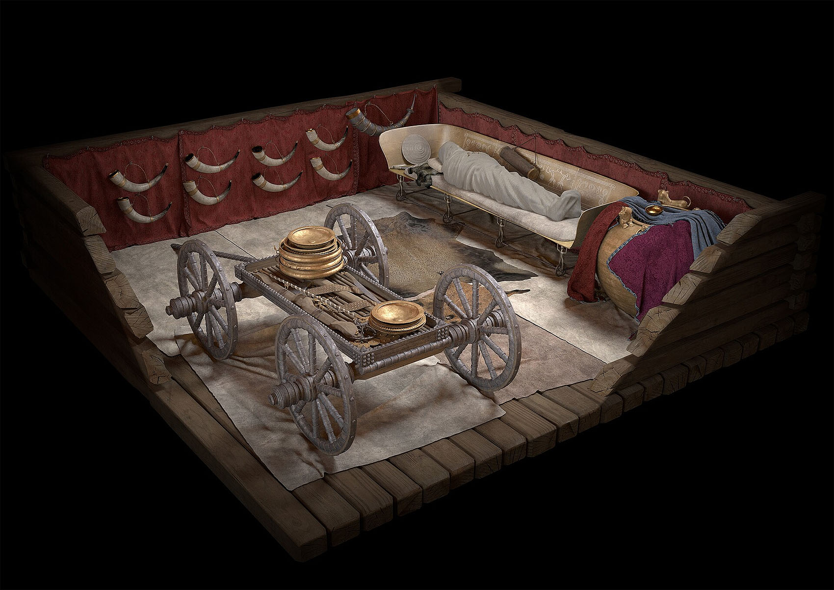 Visualisierung des Grabs eines keltischen Fürsten in Hochdorf, Quelle: Landesmuseum Württemberg, FaberCourtial; Thomas Hoppe