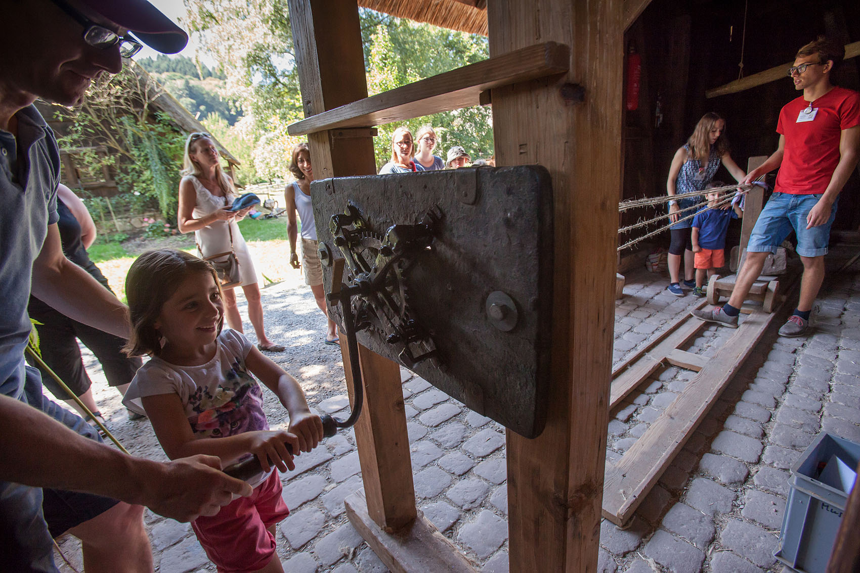 Von 11 bis 17 Uhr warten vielerlei Vorführungen und Mitmachaktionen auf die Besucher. Groß und Klein können auf dem Holzplatz das Holzspalten, Schindelziehen oder Sägen ausprobieren oder sich beim Filzen versuchen. Mit Webmeisterin Gabriela Martin können Freundschaftsbänder gewoben werden. In der Offenen Werkstatt für Familien drehen die jüngsten Museumsgäste von 11 bis 16 Uhr nach alter Technik Seile oder bauen sich das Lege-Spiel Tangram.