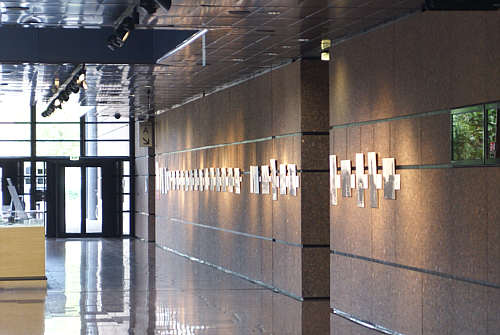 Die Bilder hängen im Foyer des Verwaltungsgebäudes.