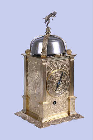 Türmchenuhr mit pfeilschießendem Amor als Bekrönung,