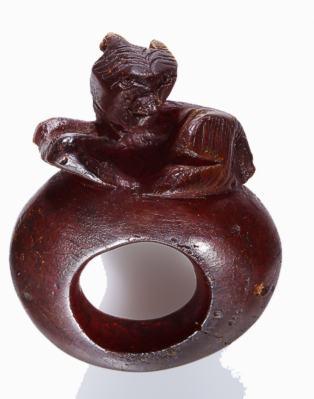 (unten) Bernsteinring mit Hundefigur aus Savaria (Savaria