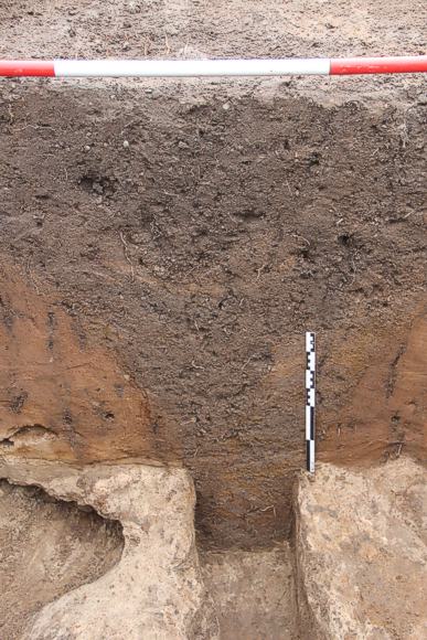 Bild: Einer der beiden entdeckten Spitzgräben im Profil.