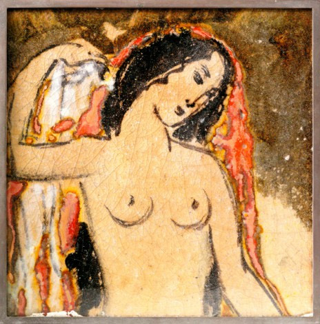 Laeuger: Fliese weiblicher Halbakt, Halbfayence, um 1927. Sammlung
