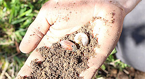 Vergangene Woche waren bereits zum Ausflug bereite Käfer und Engerlinge der Waldmaikäfer im Waldboden zu finden. Foto: Rhein-Neckar-Kreis