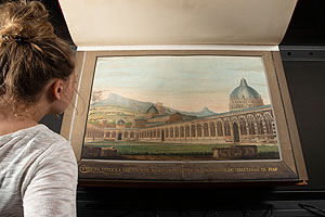 Unten: Freskomalerei des Campo Santo in Pisa, Florenz, 1812, 92 x 61 cm (in geschlossenem Zustand).