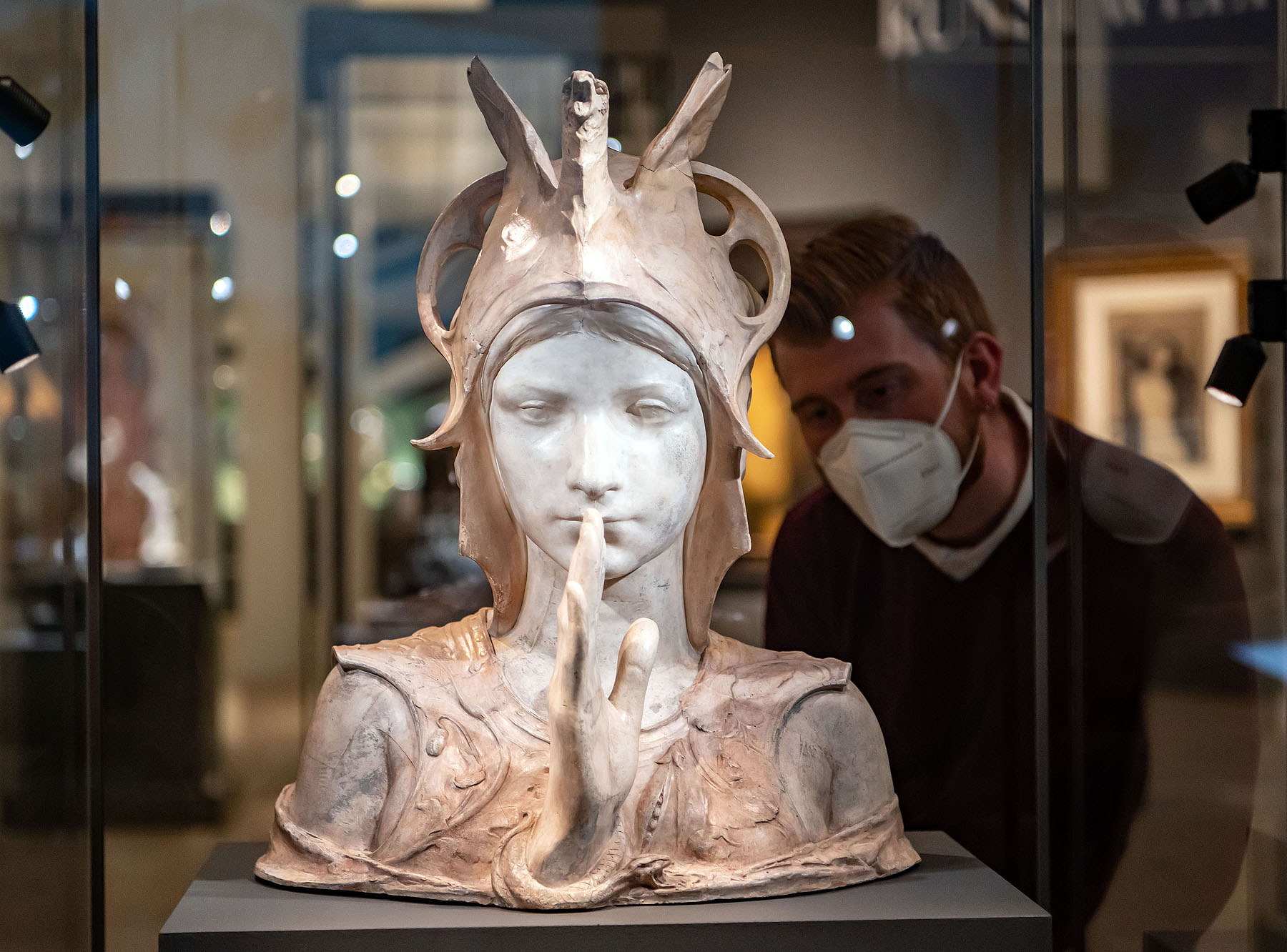 Blick auf Büste „Sphinx“, Charles van der Stappen, Brüssel, 1897, Staatliche Kunstsammlungen Dresden © Badisches Landesmuseum, Foto: ARTIS – Uli Deck