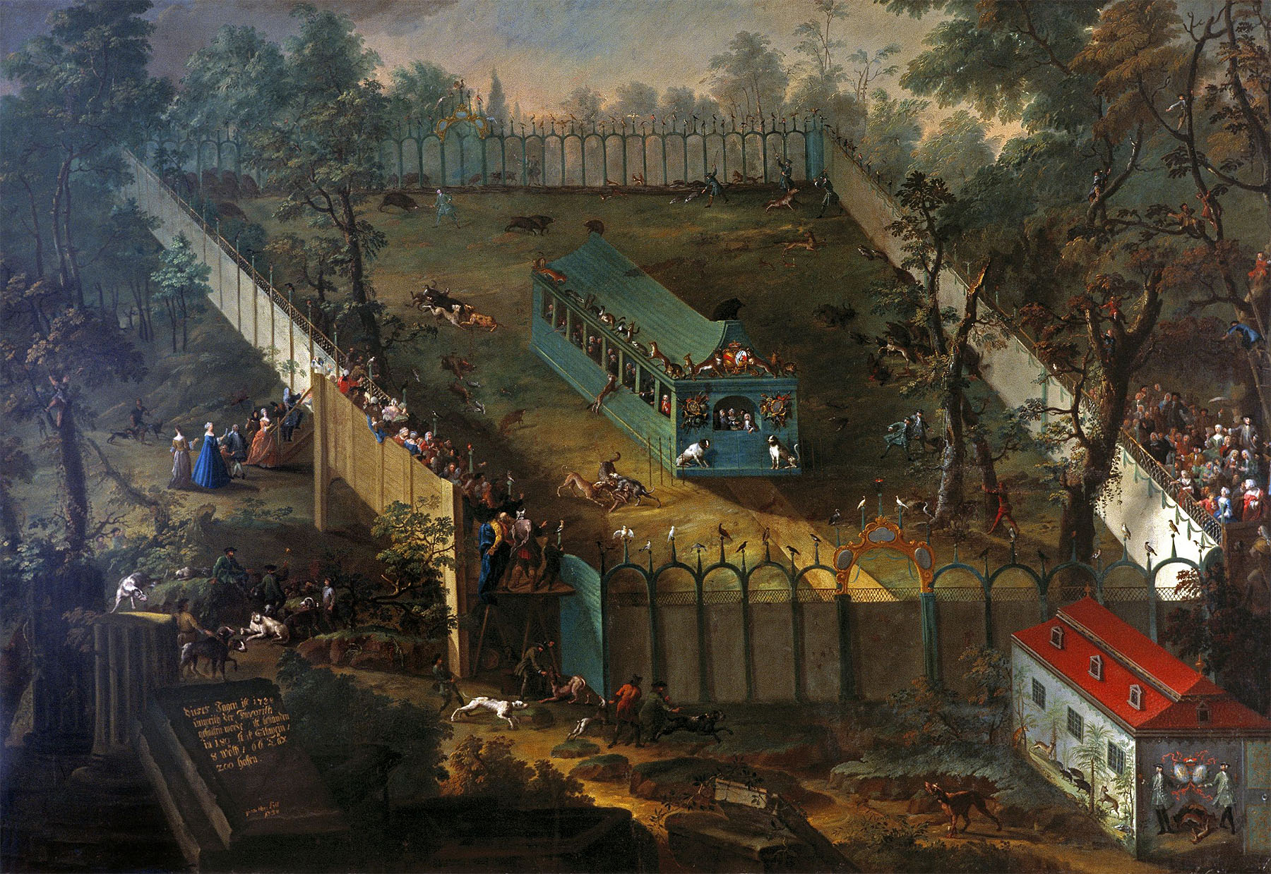 Prunkjagd des 18. Jahrhunderts. Gemälde in Schloss Favorite. Foto: Steffen Hauswirth /SSG